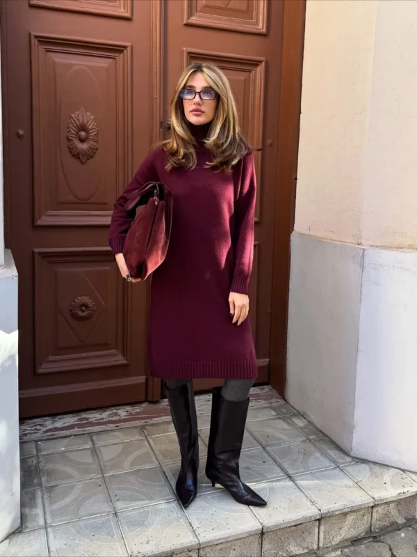 Knitted Turtleneck Dress | BORDEAUX