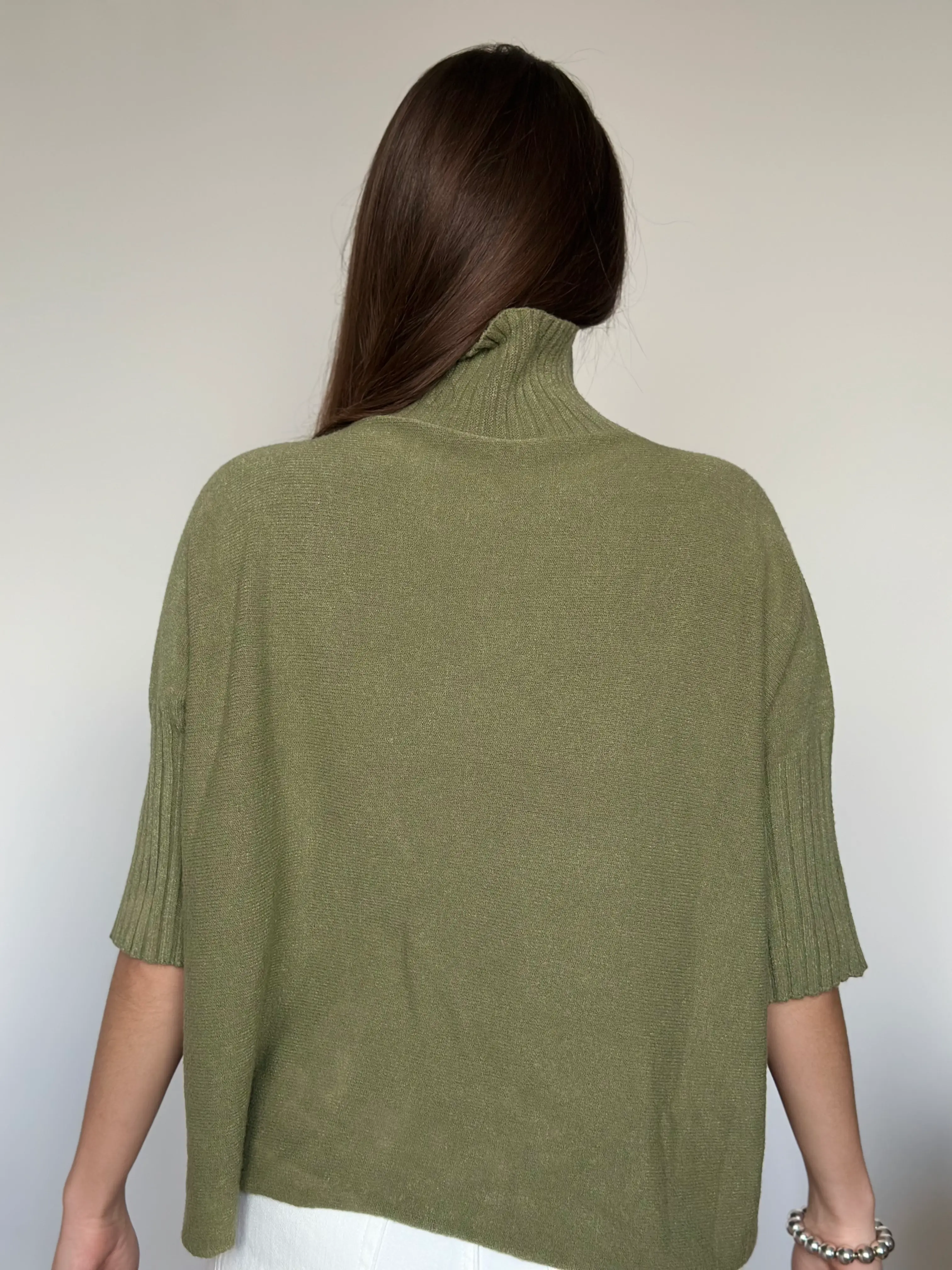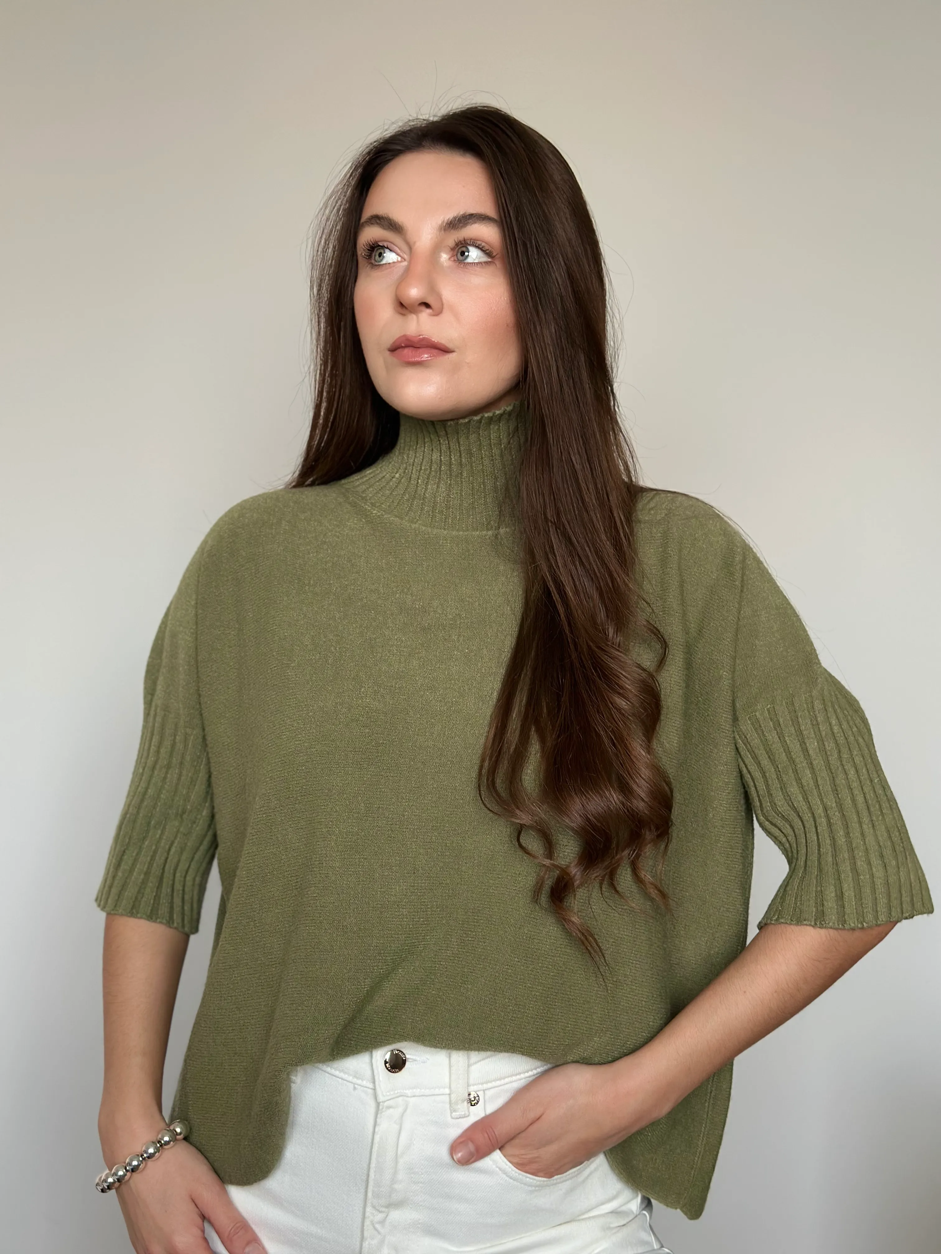 Oversized knit sweater with a straight cut and 3/4 sleeves.